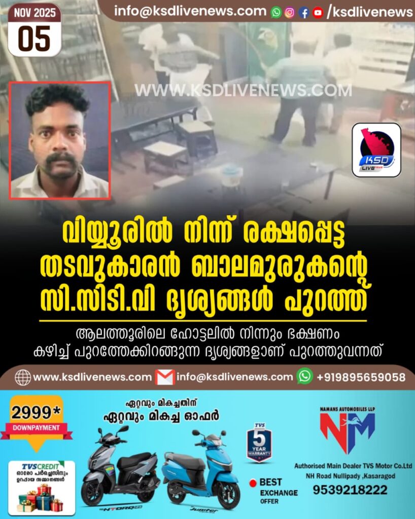 വിയ്യൂരിൽ നിന്ന് രക്ഷപ്പെട്ട തടവുകാരൻ ബാലമുരുകന്‍റെ സിസി ടിവി ദൃശ്യങ്ങൾ പുറത്ത്