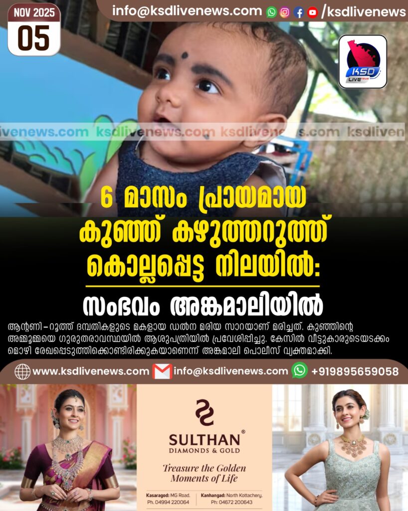 6 മാസം പ്രായമായ കുഞ്ഞ് കഴുത്തറുത്ത് കൊല്ലപ്പെട്ട നിലയിൽ; സംഭവം അങ്കമാലിയിൽ