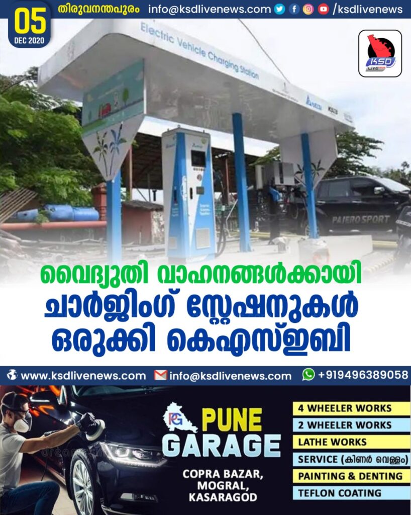വൈദ്യുതി വാഹനങ്ങൾക്കായി ചാർജിംഗ് സ്റ്റേഷനുകൾ ഒരുക്കി കെഎസ്ഇബി