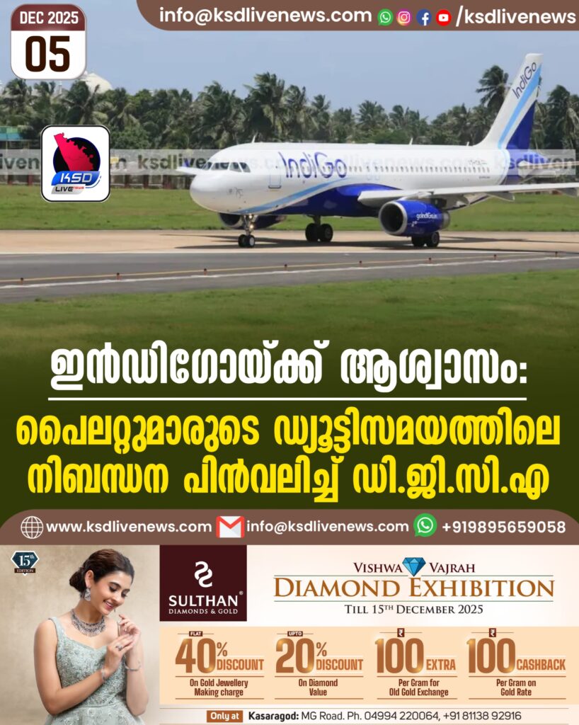 ഇൻഡിഗോയ്ക്ക് ആശ്വാസം; പൈലറ്റുമാരുടെ ഡ്യൂട്ടിസമയത്തിലെ നിബന്ധന പിൻവലിച്ച് ഡിജിസിഎ