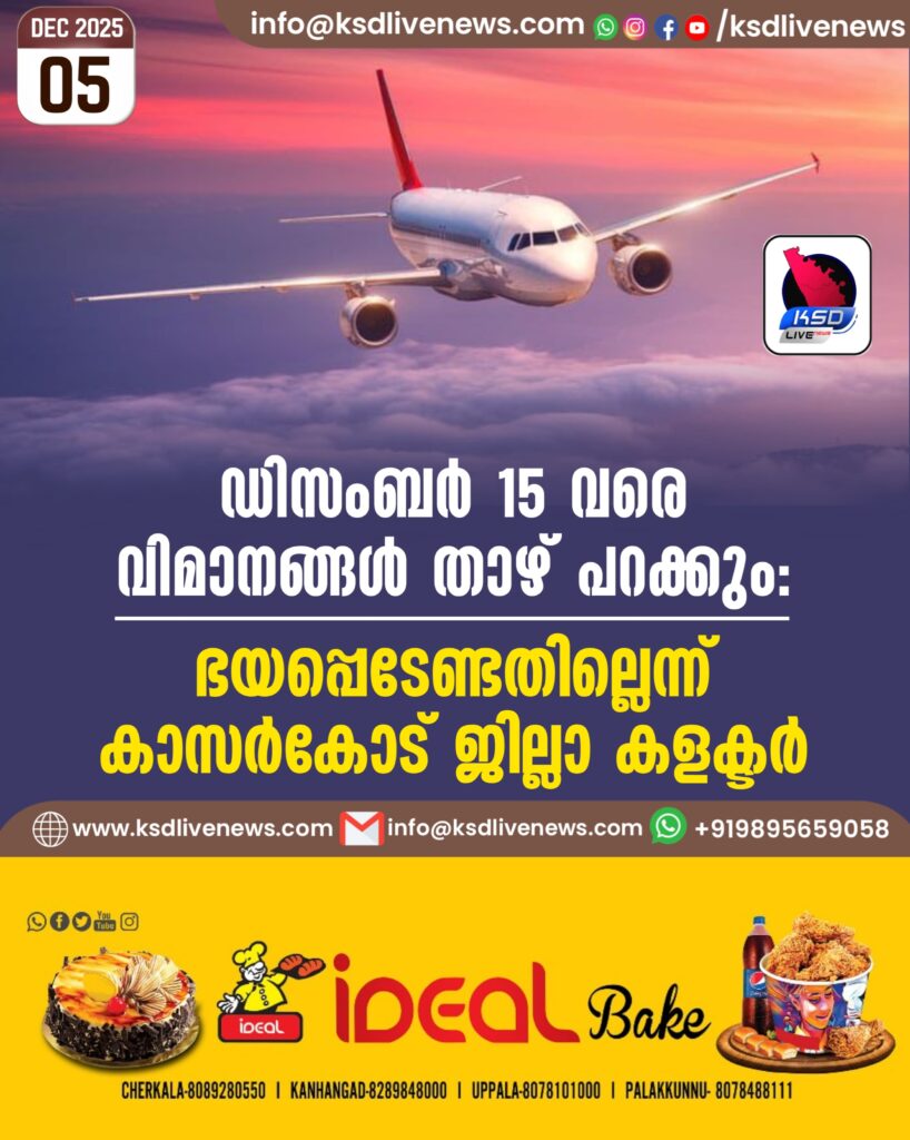 ഡിസംബർ 15 വരെ വിമാനങ്ങൾ താഴ് പറക്കും: ഭയപ്പെടേണ്ടതില്ലെന്ന് കാസർകോട് ജില്ലാ കളക്ടർ