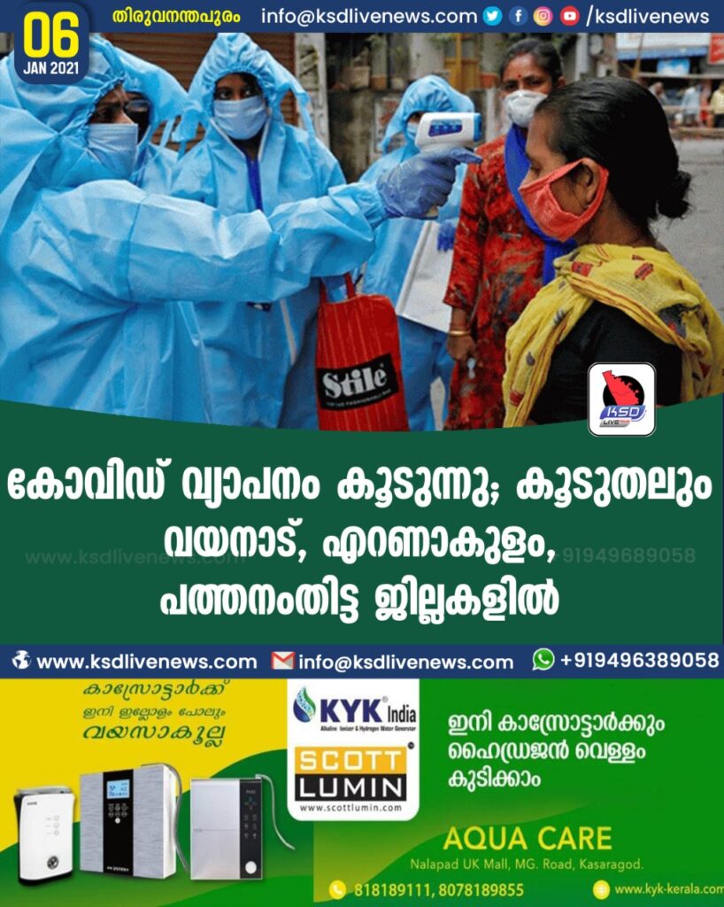 കോവിഡ് വ്യാപനം കൂടുന്നു; കൂടുതലും വയനാട്, എറണാകുളം, പത്തനംതിട്ട ജില്ലകളില്