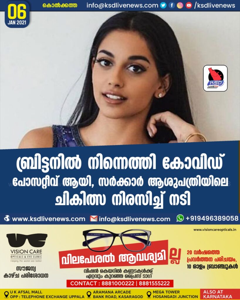 ബ്രിട്ടനിൽ നിന്നെത്തി കോവിഡ് പോസറ്റീവ് ആയി, സർക്കാർ ആശുപത്രിയിലെ ചികിത്സ നിരസിച്ച് നടി