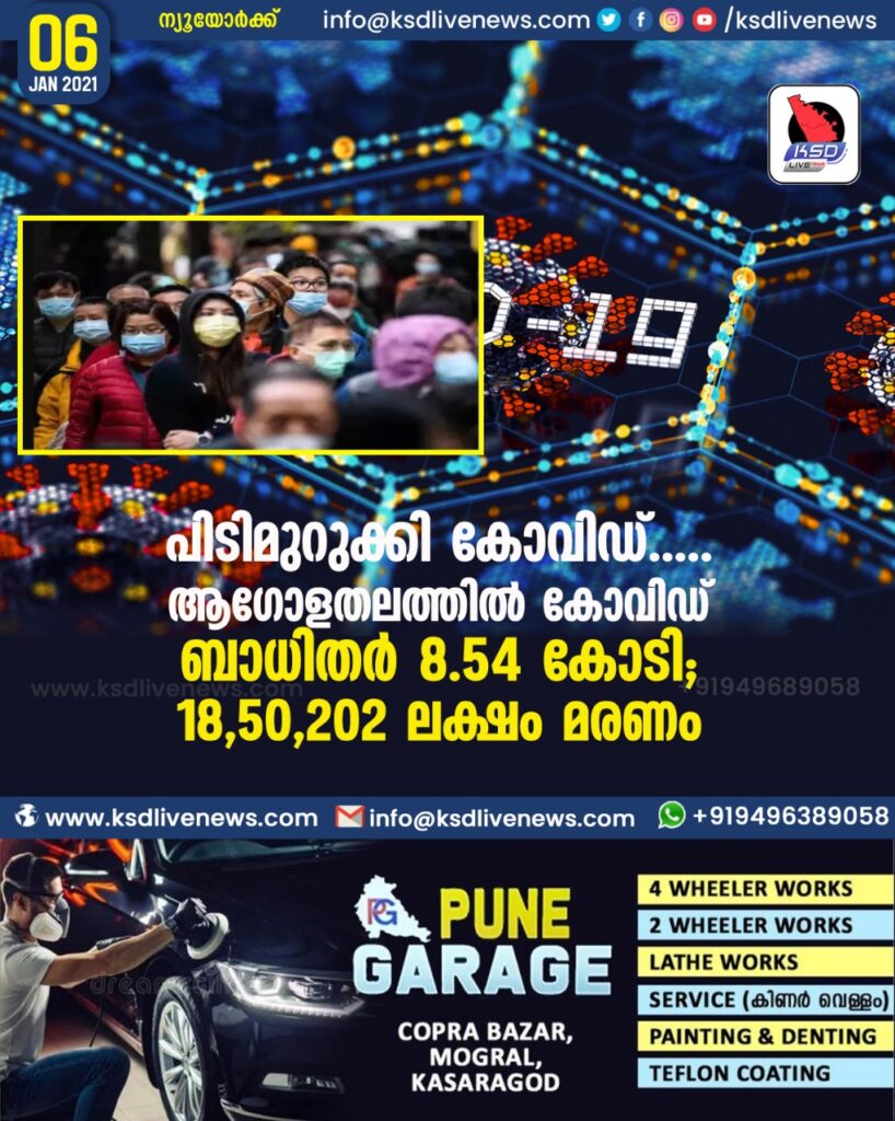 ആഗോളതലത്തിൽ കോവിഡ് ബാധിതർ 8.54 കോടി ; 18,50,202 ലക്ഷം മരണം