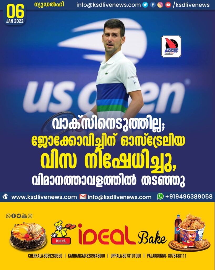 വാക്സിനെടുത്തില്ല; ജോക്കോവിച്ചിന് ഓസ്ട്രേലിയ വിസ നിഷേധിച്ചു, വിമാനത്താവളത്തില് തടഞ്ഞു