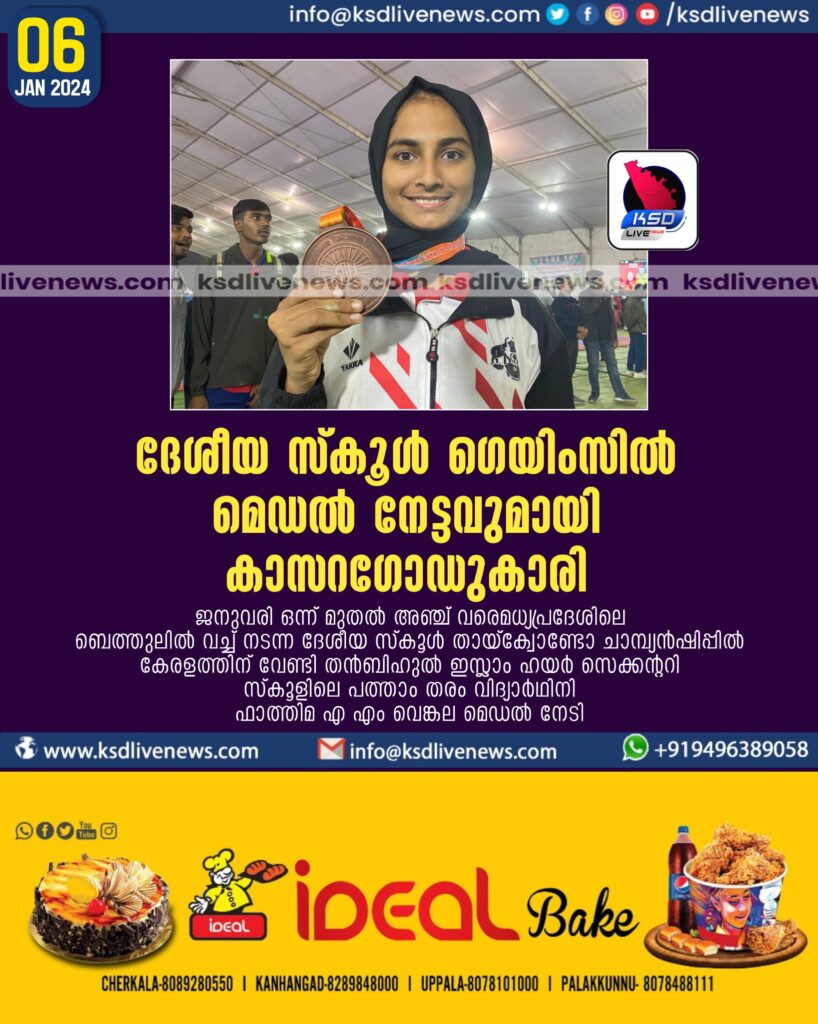 ദേശീയ സ്കൂൾ ഗെയിംസിൽ മെഡൽ നേട്ടവുമായി കാസറഗോഡുകാരി