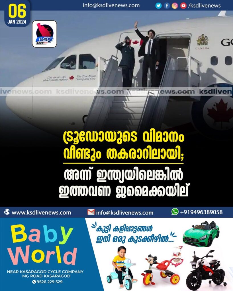 ട്രൂഡോയുടെ വിമാനം വീണ്ടും തകരാറിലായി; അന്ന് ഇന്ത്യയിലെങ്കില് ഇത്തവണ ജമൈക്കയില്