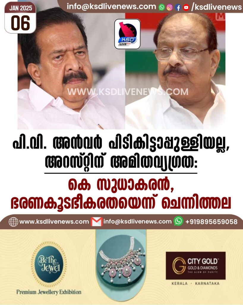 പി.വി. അൻവർ പിടികിട്ടാപ്പുള്ളിയല്ല, അറസ്റ്റിന് അമിതവ്യഗ്രത-കെ സുധാകരൻ, ഭരണകൂടഭീകരതയെന്ന് ചെന്നിത്തല