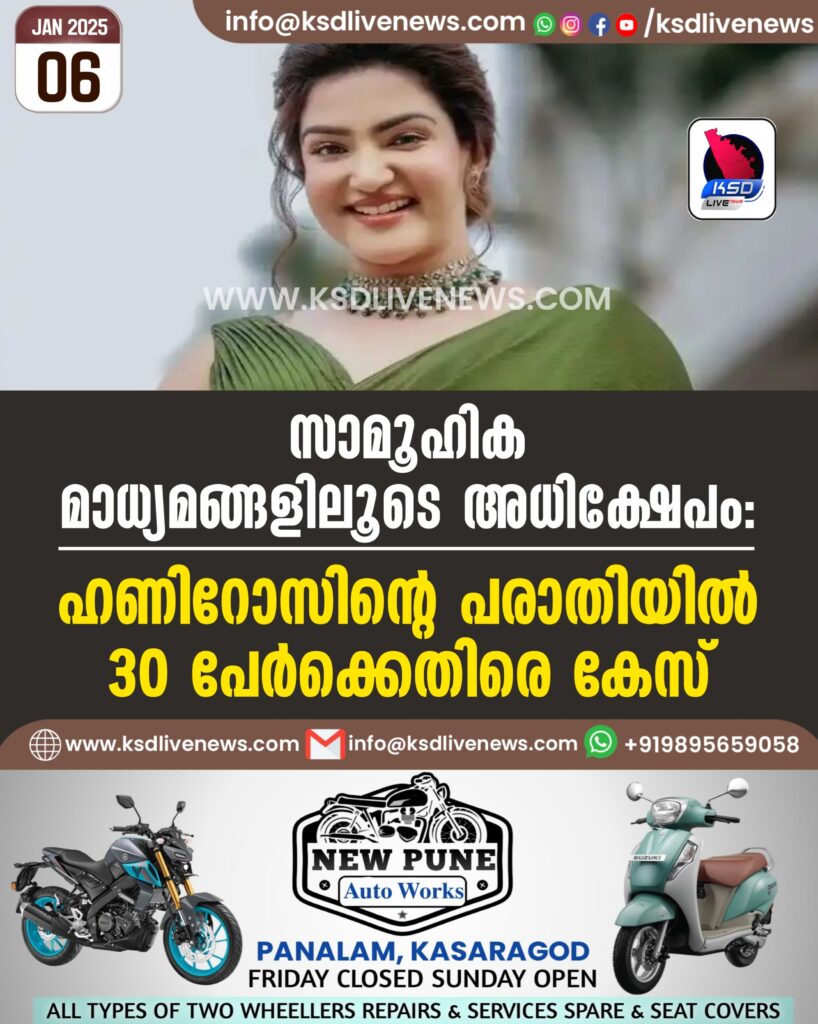 സാമൂഹിക മാധ്യമങ്ങളിലൂടെ അധിക്ഷേപം: ഹണിറോസിന്റെ പരാതിയില് 30 പേര്ക്കെതിരെ കേസ്