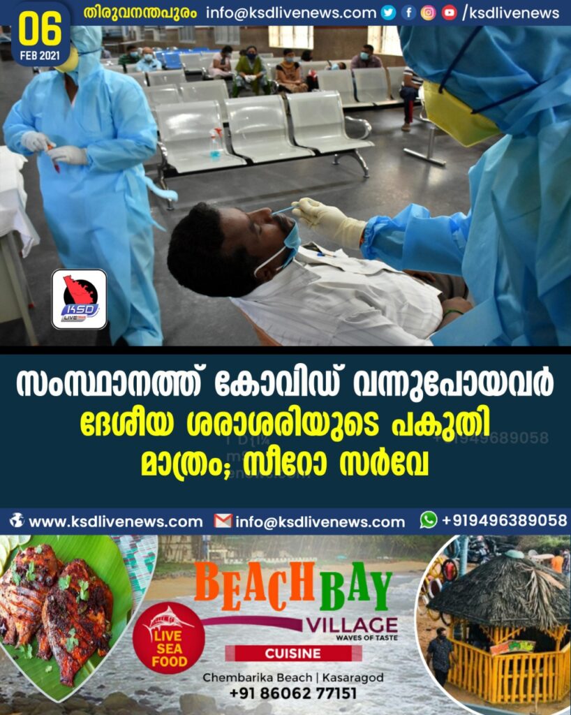 സംസ്ഥാനത്ത് കോവിഡ് വന്നുപോയവര് ദേശീയ ശരാശരിയുടെ പകുതി മാത്രം; സീറോ സര്വേ