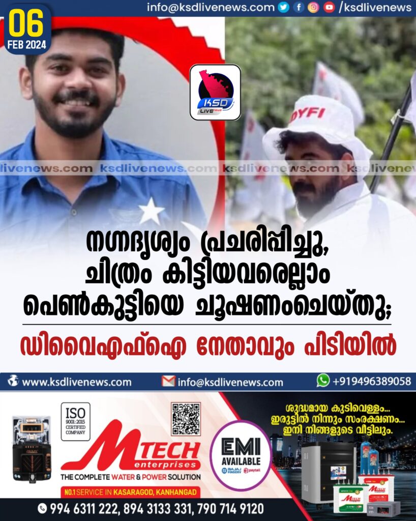നഗ്നദൃശ്യം പ്രചരിപ്പിച്ചു, ചിത്രം കിട്ടിയവരെല്ലാം പെണ്കുട്ടിയെ ചൂഷണംചെയ്തു; DYFI നേതാവും പിടിയില്
