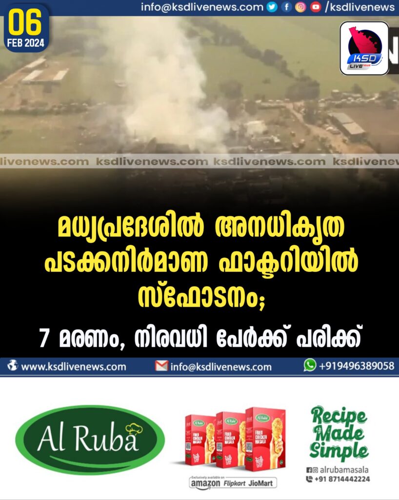 മധ്യപ്രദേശിൽ അനധികൃത പടക്കനിർമാണ ഫാക്ടറിയിൽ സ്ഫോടനം; 7 മരണം, നിരവധി പേർക്ക് പരിക്ക്