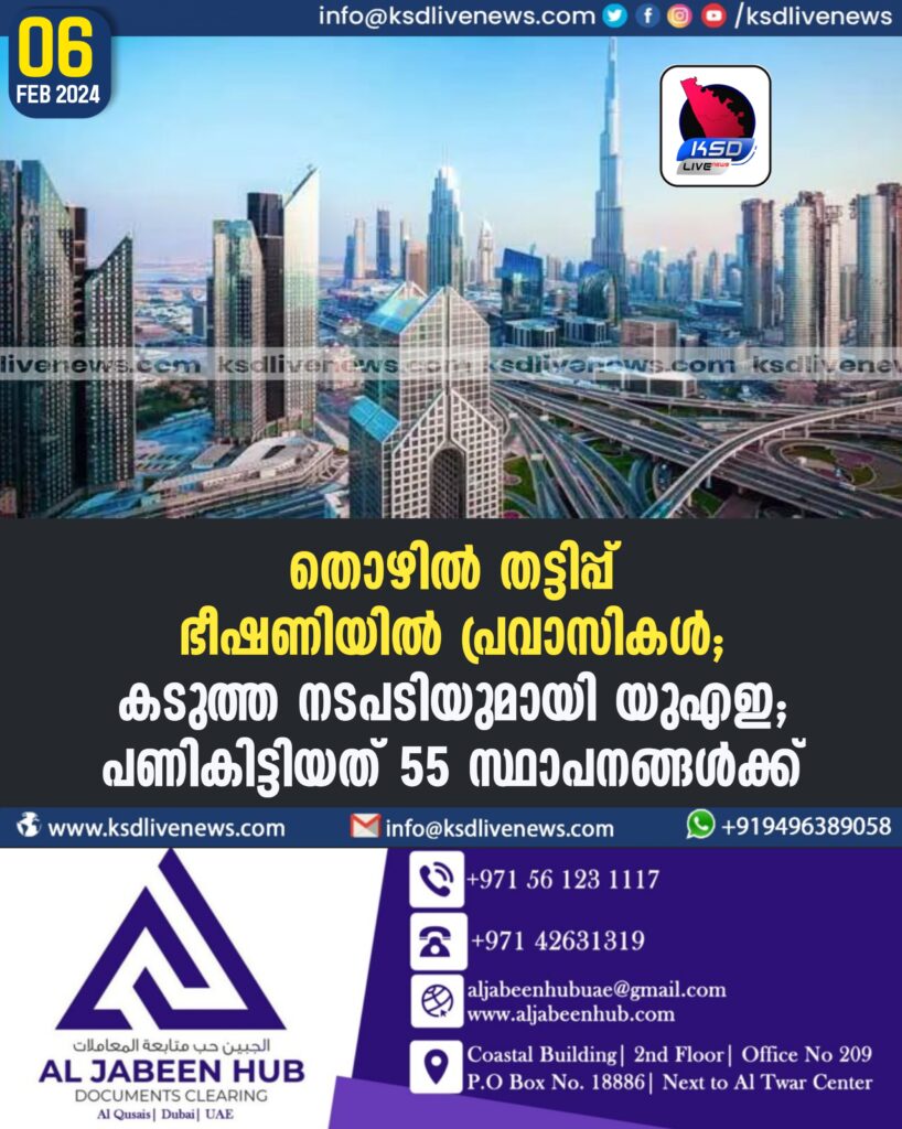 തൊഴില് തട്ടിപ്പ് ഭീഷണിയില് പ്രവാസികള്; കടുത്ത നടപടിയുമായി യുഎഇ, പണികിട്ടിയത് 55 സ്ഥാപനങ്ങള്ക്ക്