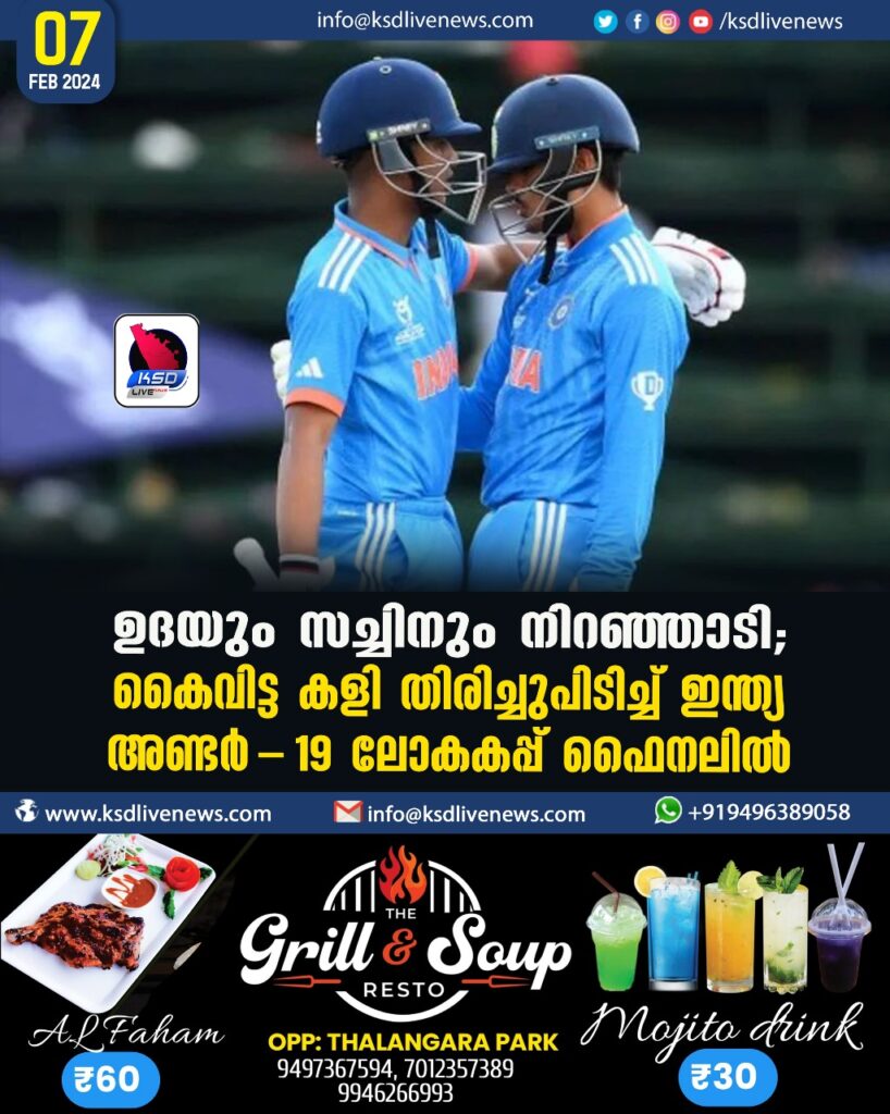 ഉദയും സച്ചിനും നിറഞ്ഞാടി; കൈവിട്ട കളി തിരിച്ചുപിടിച്ച് ഇന്ത്യ, അണ്ടര്-19 ലോകകപ്പ് ഫൈനലില്