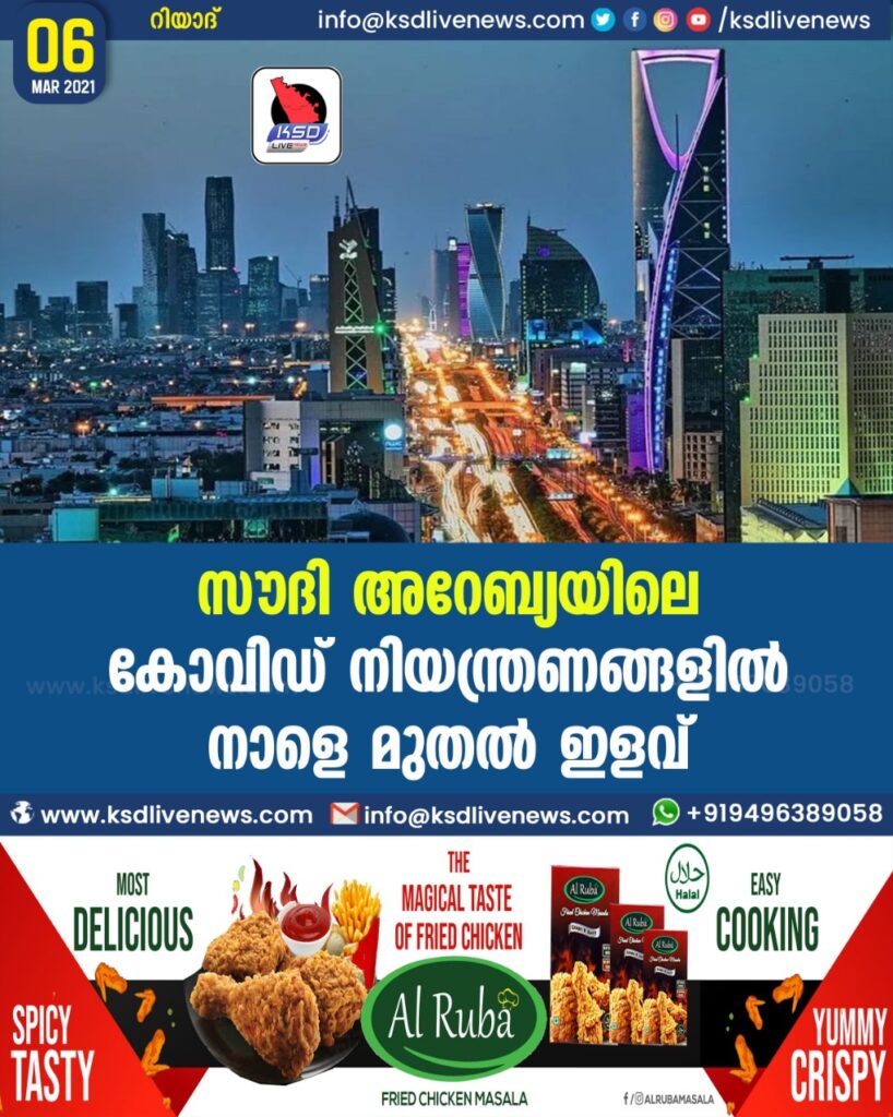 സൗദി അറേബ്യയിലെ കൊവിഡ് നിയന്ത്രണങ്ങളില് നാളെ മുതല് ഇളവ്