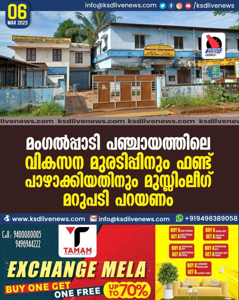 മംഗൽപ്പാടി പഞ്ചായത്തിലെ വികസന മുരടിപ്പിനും പണ്ട് പാഴാക്കിയതിനും മുസ്ലിംലീഗ് മറുപടി പറയണം.