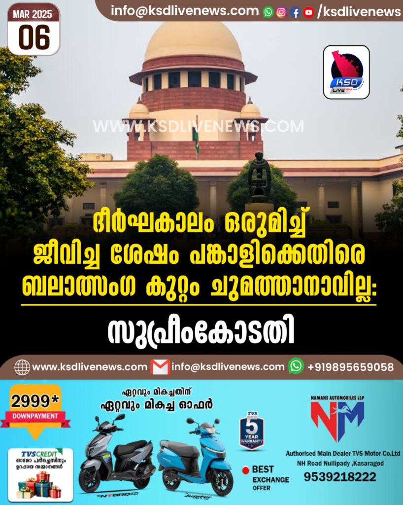 ദീര്ഘകാലം ഒരുമിച്ച് ജീവിച്ച ശേഷം പങ്കാളിക്കെതിരെ ബലാത്സംഗ കുറ്റം ചുമത്താനാവില്ല: സുപ്രീംകോടതി