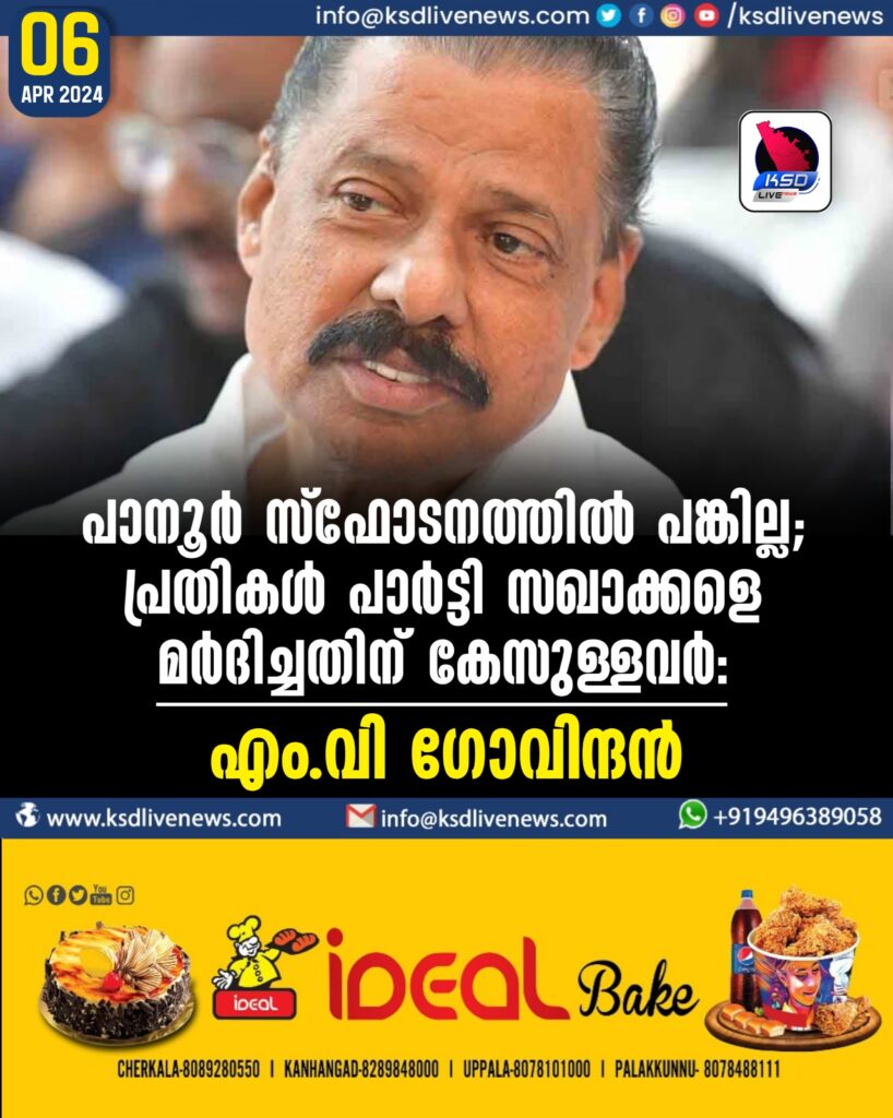 പാനൂര് സ്ഫോടനത്തില് പങ്കില്ല; പ്രതികള് പാര്ട്ടി സഖാക്കളെ മര്ദിച്ചതിന് കേസുള്ളവര്: എം.വി ഗോവിന്ദൻ