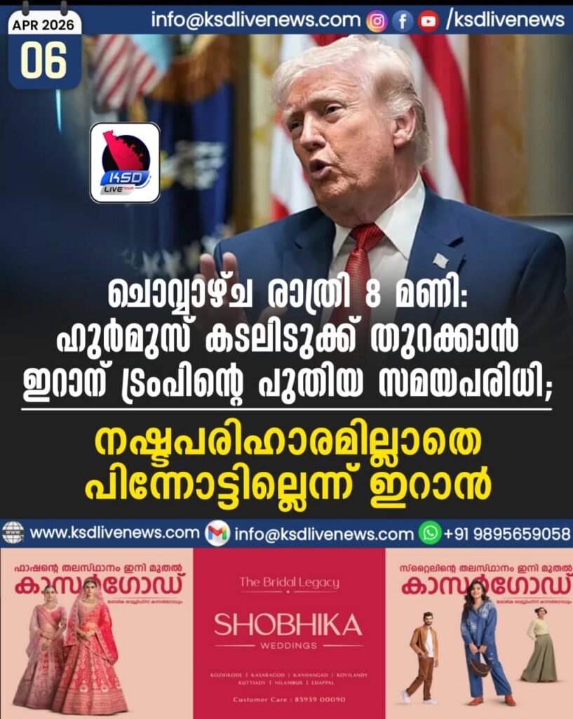ചൊവ്വാഴ്ച രാത്രി 8 മണി!’; ഹുർമുസ് കടലിടുക്ക് തുറക്കാൻ ഇറാന് ട്രംപിന്റെ പുതിയ സമയപരിധി; നഷ്ടപരിഹാരമില്ലാതെ പിന്നോട്ടില്ലെന്ന് ഇറാൻ