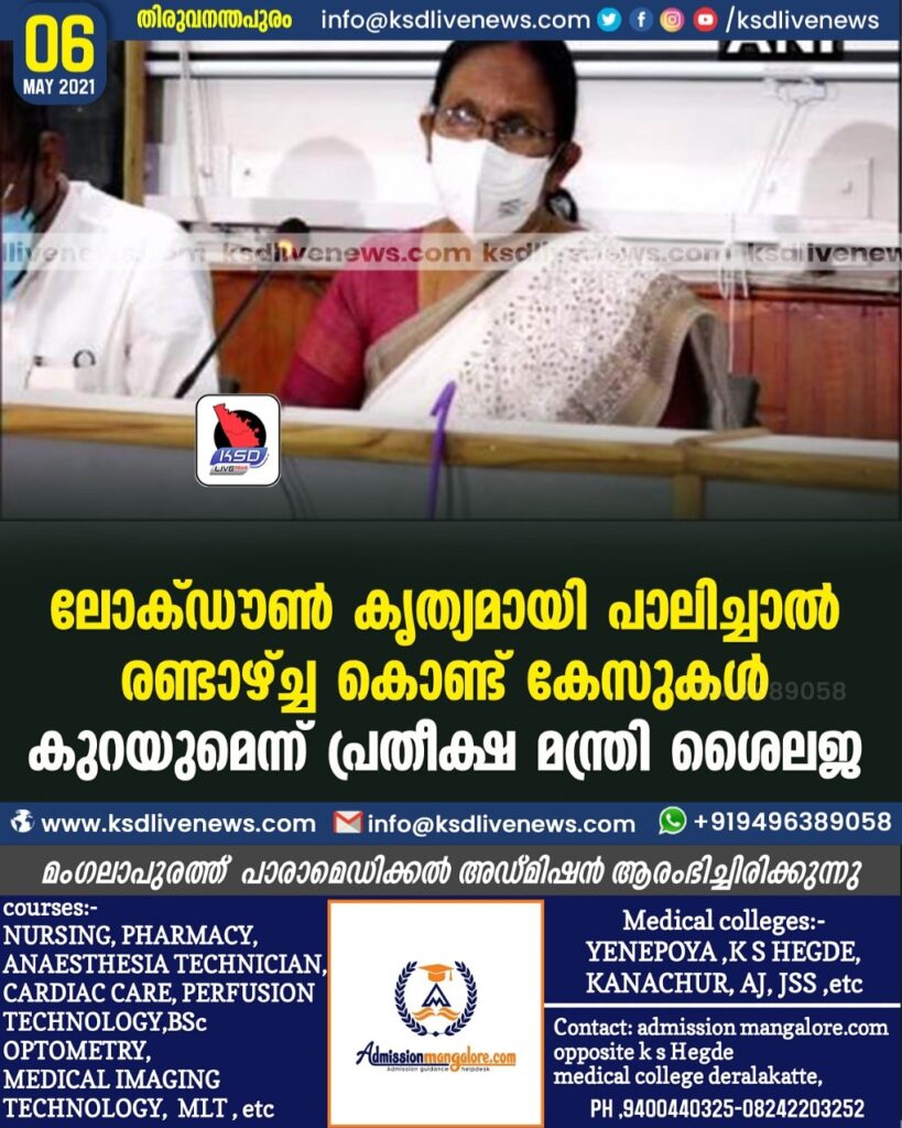 ലോക്ഡൗണ്‍ കൃത്യമായി പാലിച്ചാല്‍ രണ്ടാഴ്ച്ചകൊണ്ട് കേസുകള്‍ കുറയുമെന്ന് പ്രതീക്ഷ -മന്ത്രി ശൈലജ