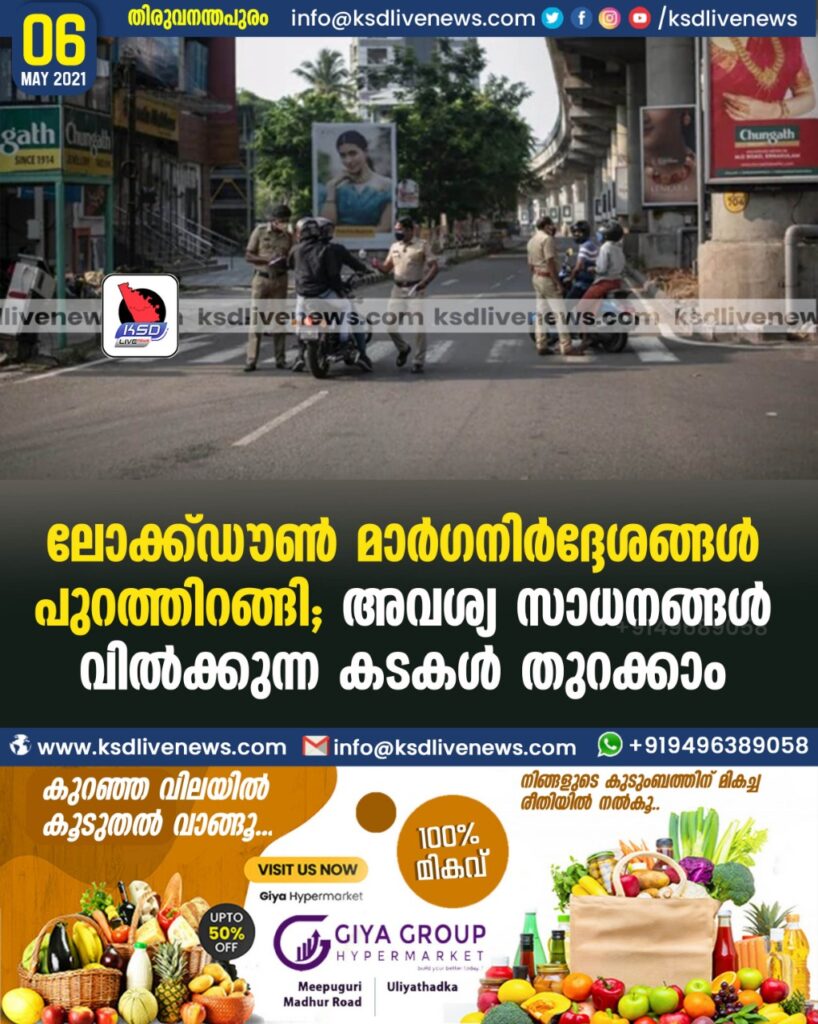 ലോക്ക്ഡൗണ്‍ മാര്‍ഗനിര്‍ദ്ദേശങ്ങള്‍ പുറത്തിറങ്ങി; അവശ്യ സാധനങ്ങള്‍ വില്‍ക്കുന്ന കടകള്‍ തുറക്കാം
