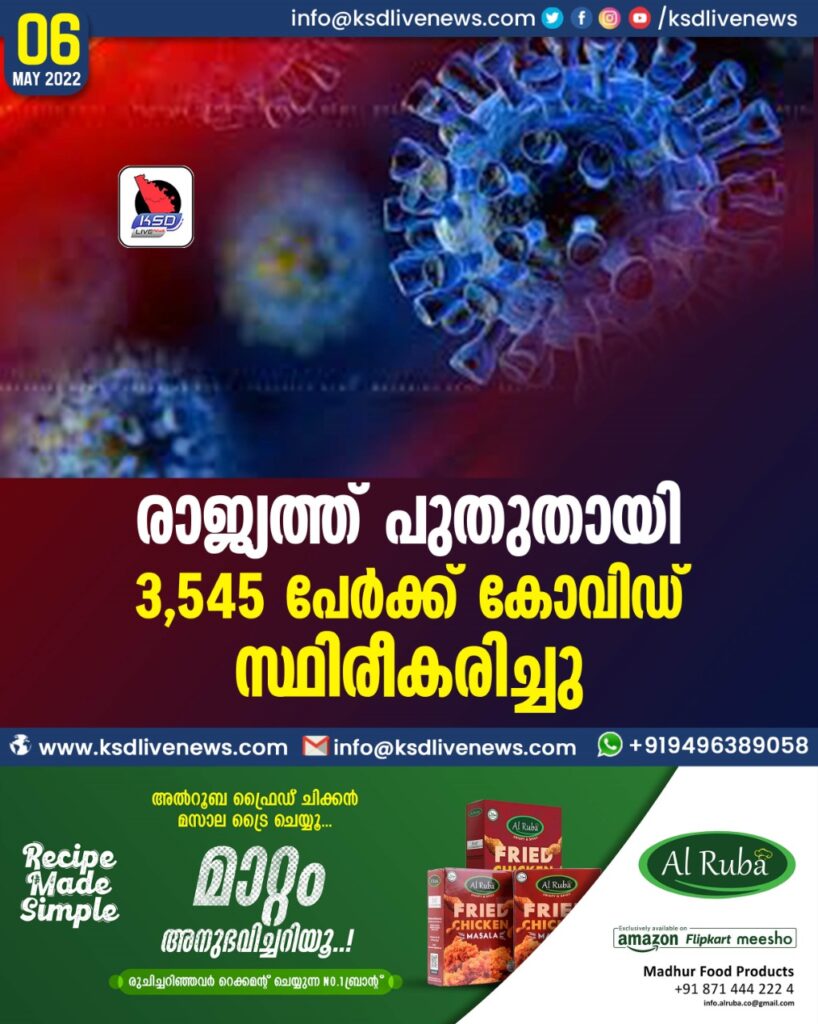 രാജ്യത്ത് പുതുതായി 3,545 പേര്‍ക്ക് കോവിഡ് സ്ഥിരീകരിച്ചു