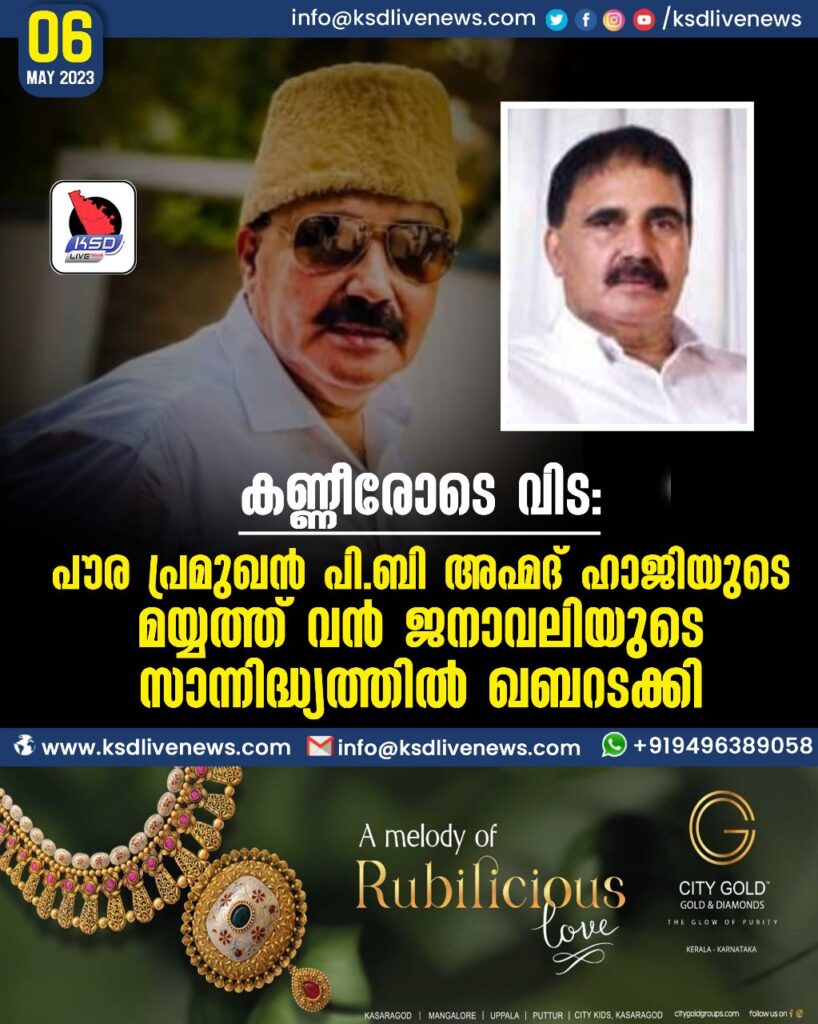 കണ്ണീരോടെ വിട : പൗര പ്രമുഖൻ പി.ബി അഹ്മദ് ഹാജിയുടെ മയ്യത്ത് വൻ ജനാവലിയുടെ സാന്നിദ്ധ്യത്തിൽ ഖബറടക്കി