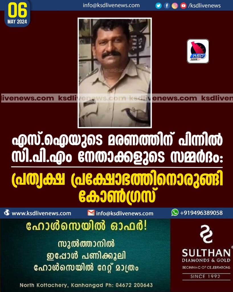 എസ്.ഐയുടെ മരണത്തിന് പിന്നില് സി.പി.എം നേതാക്കളുടെ സമ്മര്ദം: പ്രത്യക്ഷ പ്രക്ഷോഭത്തിനൊരുങ്ങി കോണ്ഗ്രസ്