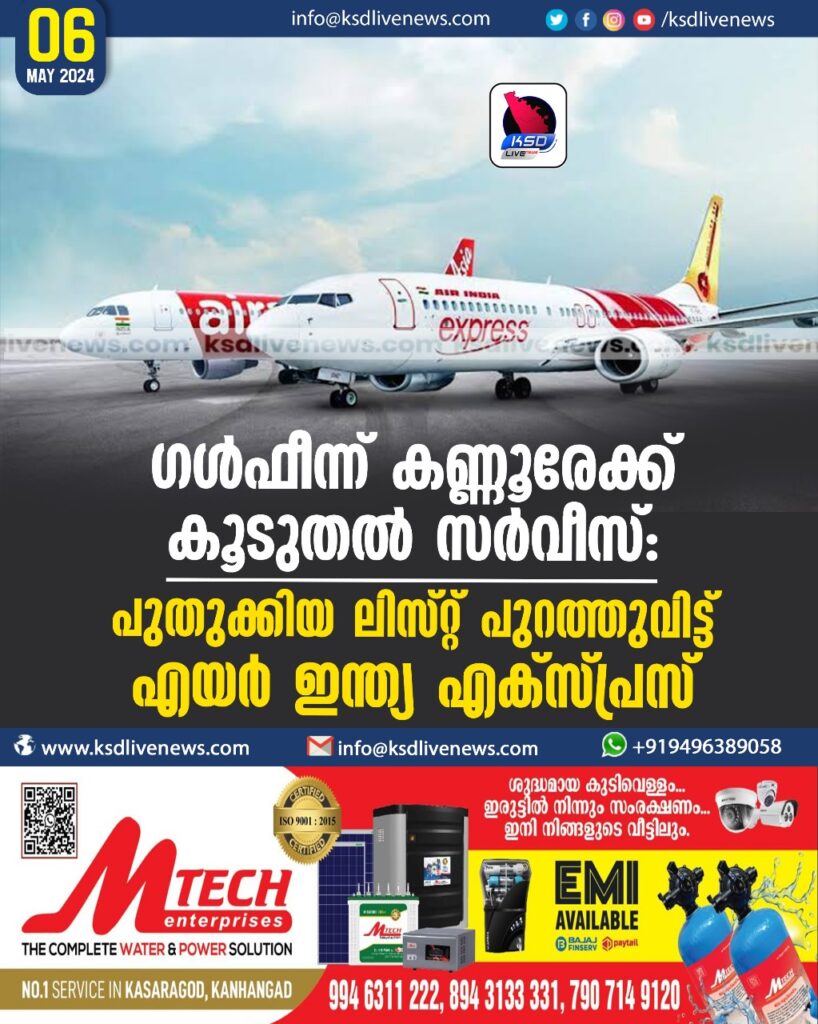 ഗള്ഫീന്ന് കണ്ണൂരേക്ക് കൂടുതല് സര്വീസ്: പുതുക്കിയ ലിസ്റ്റ് പുറത്തുവിട്ട് എയര് ഇന്ത്യ എക്സ്പ്രസ്