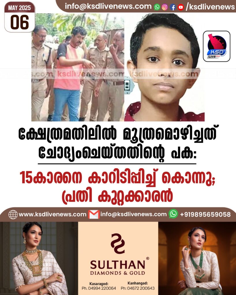 ക്ഷേത്രമതിലിൽ മൂത്രമൊഴിച്ചത് ചോദ്യംചെയ്തതിൻ്റെ പക: 15-കാരനെ കാറിടിപ്പിച്ച് കൊന്നു; പ്രതി കുറ്റക്കാരൻ