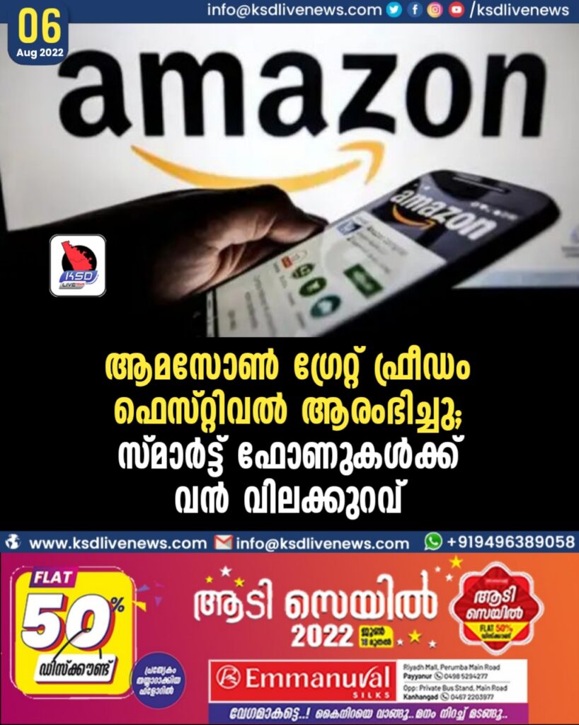 ആമസോണ് ഗ്രേറ്റ് ഫ്രീഡം ഫെസ്റ്റിവല് ആരംഭിച്ചു; സ്മാര്ട്ട് ഫോണുകള്ക്ക് വന് വിലക്കുറവ്