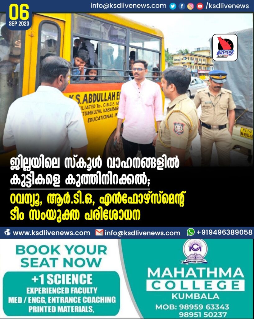 ജില്ലയിലെ സ്കൂൾ വാഹനങ്ങളിൽ കുട്ടികളെ കുത്തിനിറക്കൽ; റവന്യൂ, ആർ.ടി.ഒ, എൻഫോഴ്സ്മെന്റ് ടീം സംയുക്ത പരിശോധന