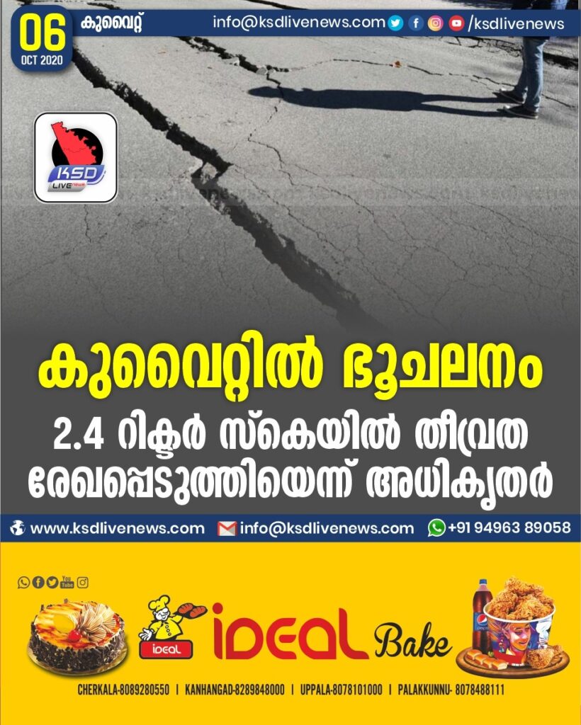 കുവൈറ്റിൽ ഭൂചലനം ; 2.4 റിക്ടർ സ്കെയിൽ തീവ്രത രേഖപ്പെടുത്തിയെന്ന് അധികൃതർ