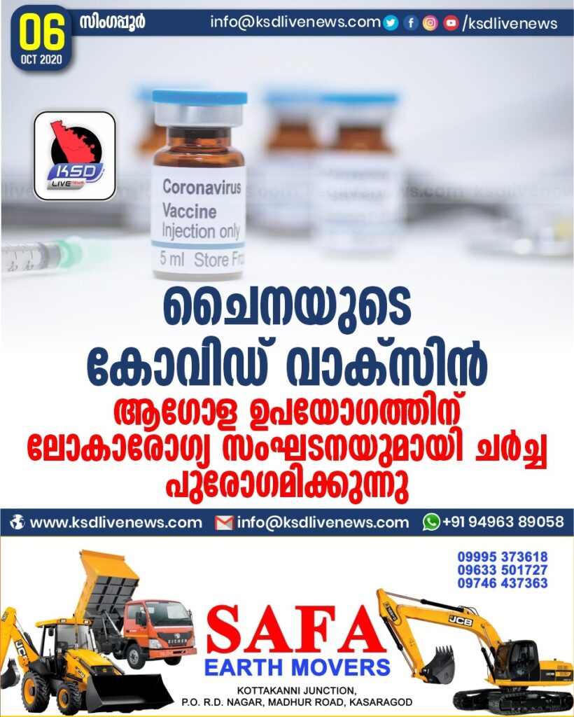 സിംഗപ്പൂർ • കോവിഡിനെതിരെ തദ്ദേശീയമായി വികസിപ്പിച്ച വാക്സസീൻ ആഗോളതലത്തിൽ ഉപയോഗിക്കാൻ ചൈനയും ലോകാരോഗ്യ സംഘടനയും ( ഡബ്ലഎച്ച്ഒ ) . ചൈനയുമായി ഇക്കാര്യത്തിൽ പ്രാഥമിക ചർച്ച നടത്തിയെന്നു വെസ്റ്റേൺ പസഫിക് മേഖലയിലെ എസൻഷ്യൽ മെഡിസിൻസ് ആൻഡ് ഹെൽത്ത് ടെക്നോളജീസിന്റെ ഡബ്ലഎച്ച്ഒ കോഓർഡിനേറ്റർ സൊകോറോ എസ്കലേറ്റ് ഓൺലൈൻ വാർത്താസമ്മേളനത്തിൽ അറിയിച്ചു . ചൈനയുടേതടക്കമുള്ള വാക്സസീനുകൾ അടിയന്തരമായി വേണ്ടിവന്നാൽ ഉപയോഗിക്കാനായുള്ള പട്ടികയിൽ ഡബ്ലഎച്ച്ഒ നേരത്തേ ഉൾപ്പെടുത്തിയിരുന്നു .