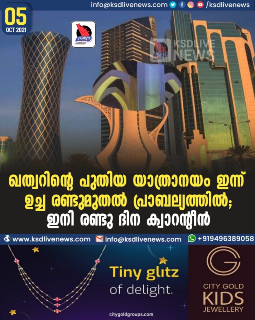 ഖത്വറിന്റെ പുതിയ യാത്രാനയം ഇന്ന് ഉച്ച രണ്ടുമുതൽ പ്രാബല്യത്തിൽ; ഇനി രണ്ടുദിന ക്വാറൻറീൻ