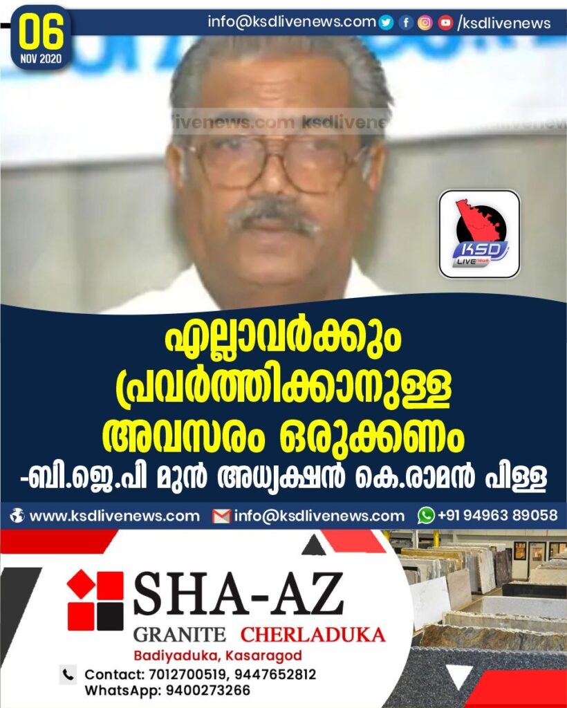 എല്ലാവര്ക്കും പ്രവര്ത്തിക്കാനുള്ള അവസരം ഒരുക്കണം- ബി.ജെ.പി മുന് അധ്യക്ഷന് കെ.രാമന് പിള്ള