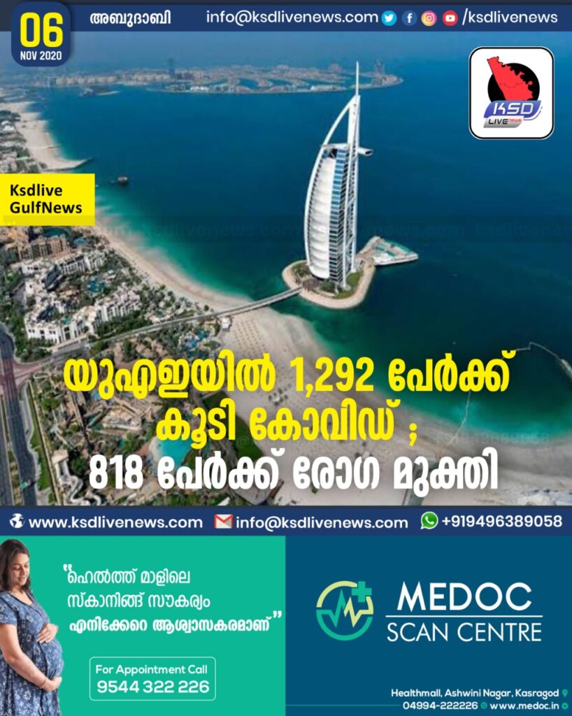 യുഎഇയിൽ 1,292 പേർക്ക് കൂടി കോവിഡ് ; 818 പേർക്ക് രോഗ മുക്തി