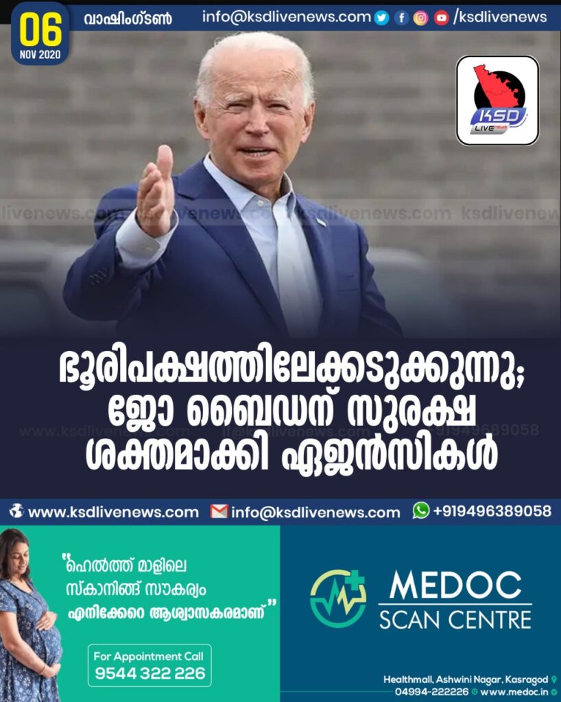 ഭൂരിപക്ഷത്തിലേക്കടുക്കുന്നു ; ജോ ബൈഡന് സുരക്ഷ ശക് തമാക്കി; ഏജൻസികൾ