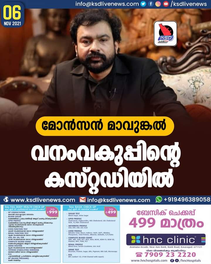 മോൻസൻ മാവുങ്കൽ വനംവകുപ്പിന്റെ കസ്റ്റഡിയിൽ