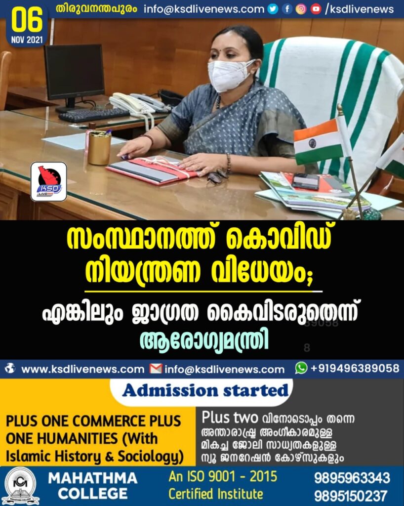 സംസ്ഥാനത്ത് കൊവിഡ് നിയന്ത്രണ വിധേയം; എങ്കിലും ജാഗ്രത കൈവിടരുതെന്ന് ആരോഗ്യമന്ത്രി