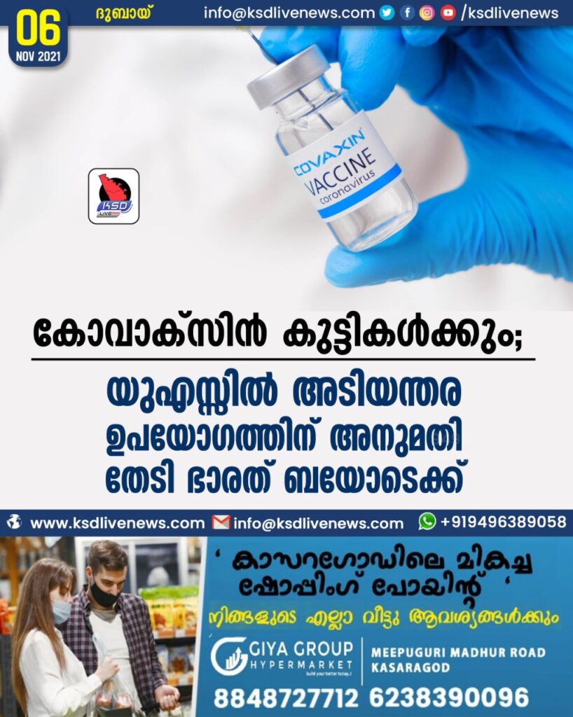 കോവാക്സിന് കുട്ടികള്ക്കും; യുഎസ്സില് അടിയന്തര ഉപയോഗത്തിന് അനുമതി തേടി ഭാരത് ബയോടെക്ക്
