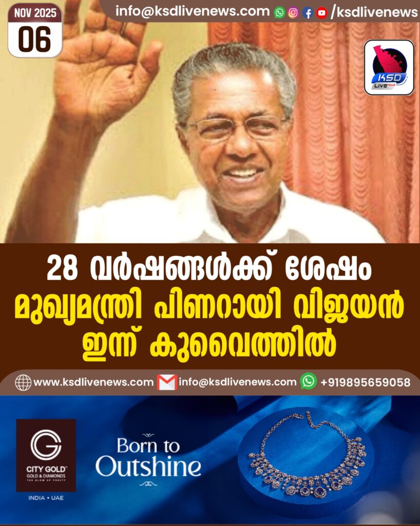 28 വര്ഷങ്ങള്ക്ക് ശേഷം മുഖ്യമന്ത്രി പിണറായി വിജയന് ഇന്ന് കുവൈത്തില്