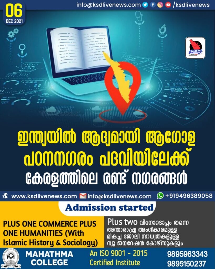 ഇന്ത്യയില് ആദ്യമായി ആഗോള പഠനനഗരം പദവിയിലേക്ക് കേരളത്തിലെ രണ്ട് നഗരങ്ങള്