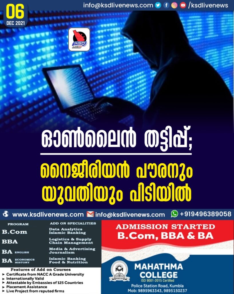 ഓണ്‍ലൈന്‍ തട്ടിപ്പ്; നൈജീരിയന്‍ പൗരനും യുവതിയും പിടിയില്‍