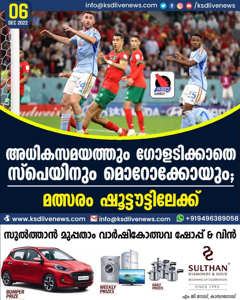 അധികസമയത്തും ഗോളടിക്കാതെ സ്‌പെയിനും മൊറോക്കോയും; മത്സരം ഷൂട്ടൗട്ടിലേക്ക്