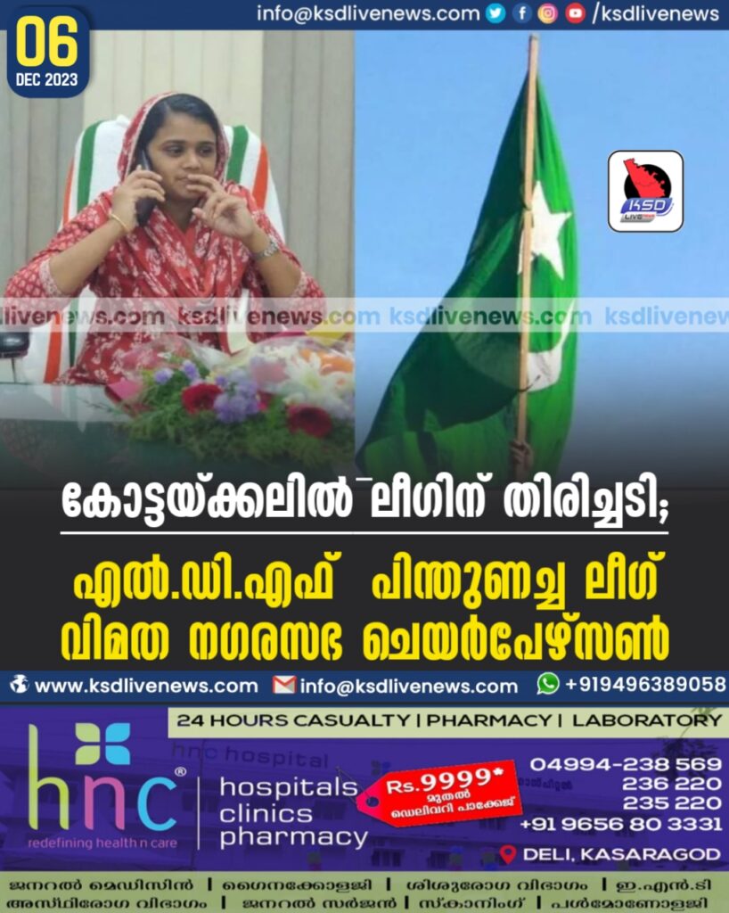കോട്ടയ്ക്കലിൽ ലീഗിന് തിരിച്ചടി; LDF പിന്തുണച്ച ലീഗ് വിമത നഗരസഭ ചെയര്പേഴ്സണ്