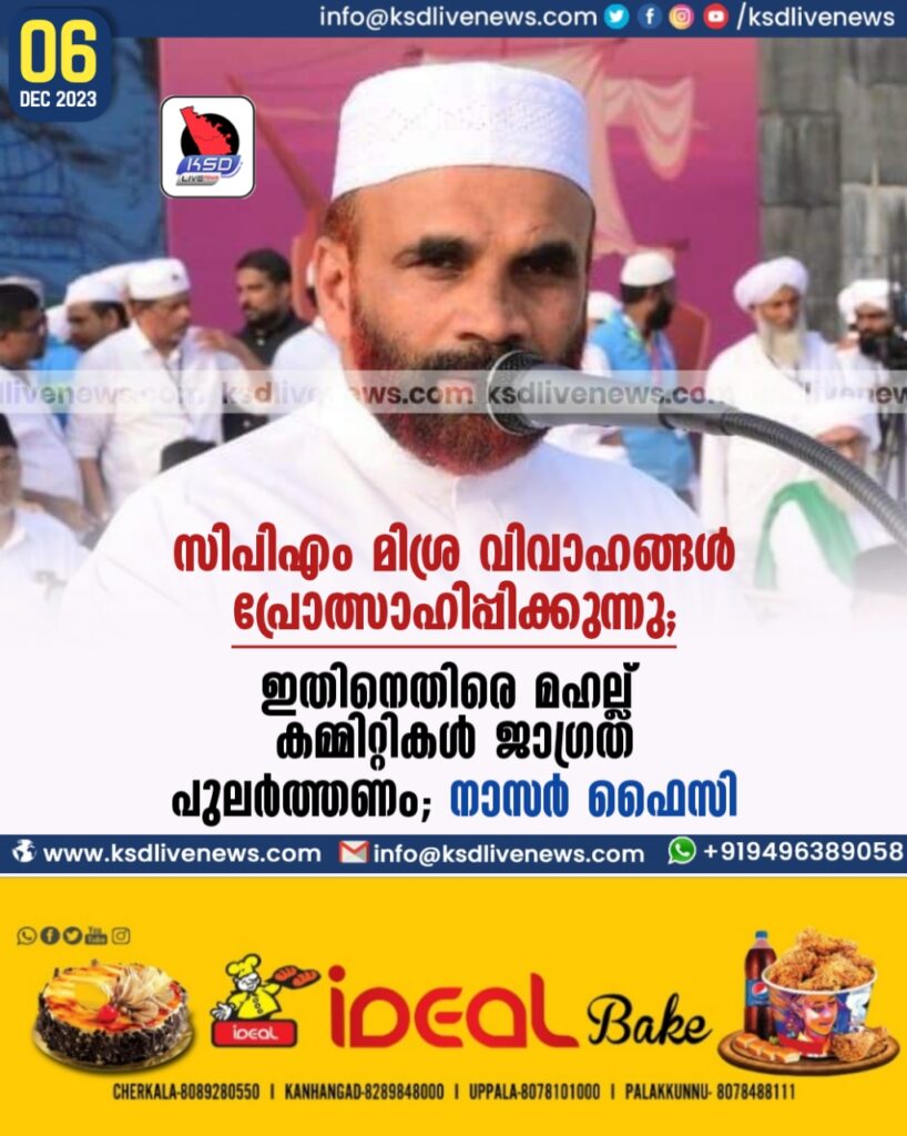 സിപിഎം മിശ്ര വിവാഹങ്ങൾ പ്രോത്സാഹിപ്പിക്കുന്നു, ഇതിനെതിരെ മഹല്ല് കമ്മിറ്റികൾ ജാഗ്രത പുലർത്തണം’: നാസർ ഫൈസി