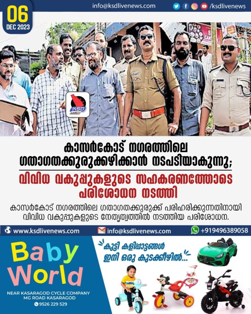 കാസർകോട് നഗരത്തിലെ ഗതാഗതക്കുരുക്കഴിക്കാൻ നടപടിയാകുന്നു; വിവിധ വകുപ്പുകളുടെ സഹകരണത്തോടെ പരിശോധന നടത്തി