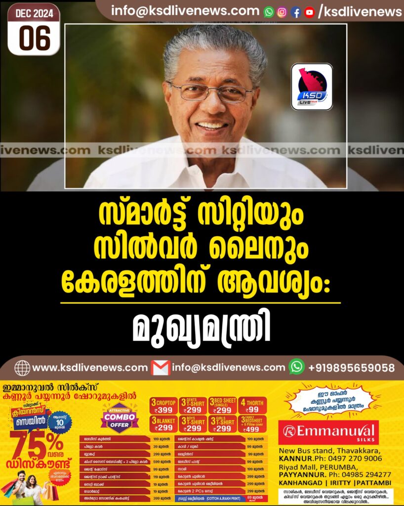 സ്മാര്ട്ട് സിറ്റിയും സില്വര്ലൈനും കേരളത്തിന് ആവശ്യം: മുഖ്യമന്ത്രി