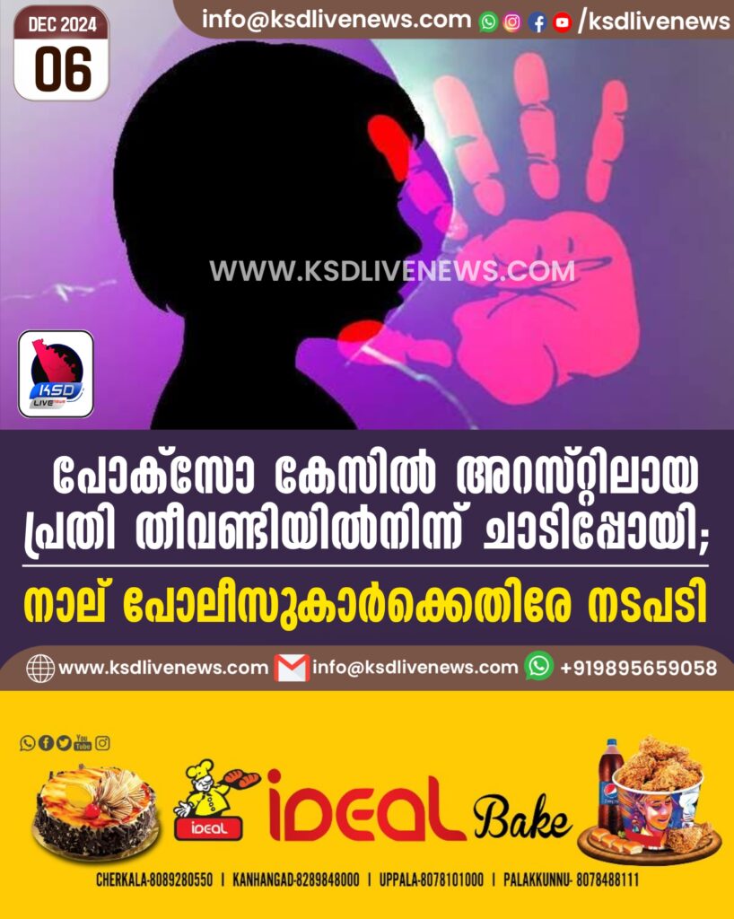 പോക്സോ കേസില് അറസ്റ്റിലായ പ്രതി തീവണ്ടിയില്നിന്ന് ചാടിപ്പോയി; പോലീസുകാര്ക്കെതിരേ നടപടി